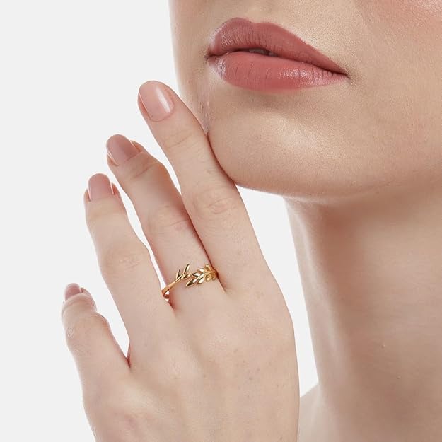 925 Sterling Silver Gold Plated Leafy Beauty Womens Leaf Ring