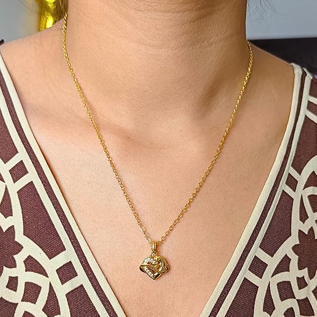 1 Gram Micro Gold Plated Heart Necklace Chain and Sleek Pendant Locket with Zircon Stones