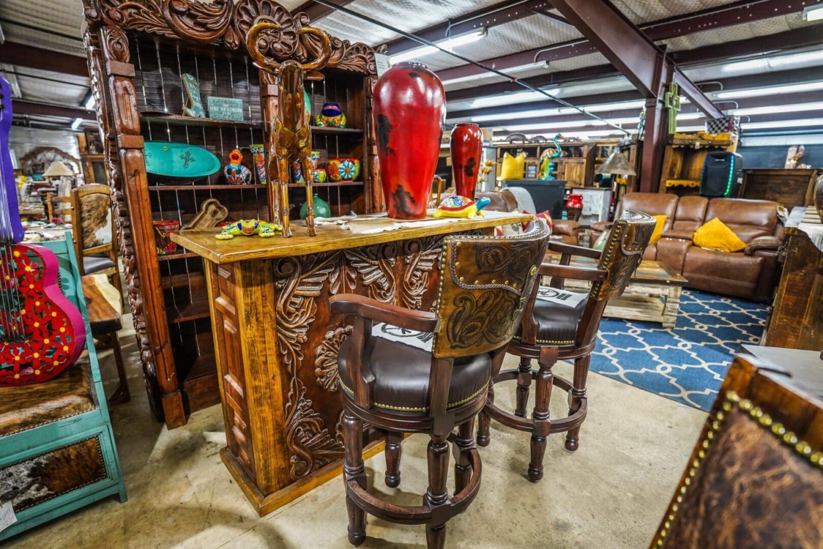 Experience the ultimate in rustic elegance and handcrafted beauty with the stunning, one-of-a-kind Hand Carved Two-Piece Bar Set. This exceptional piece boasts a sturdy, hand-hewn construction, intricate hand-carved details, and a unique, natural finish that showcases the beauty of the wood.