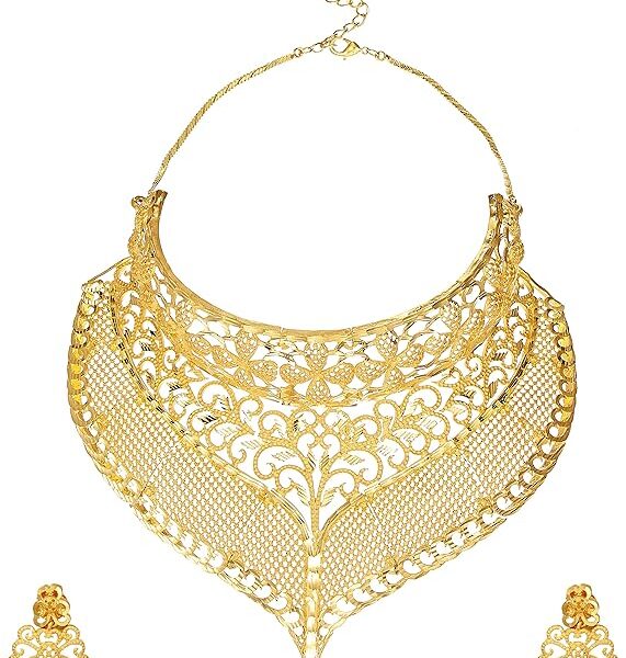 24ct Gold Plated Brass Bridal Wedding Choker Necklace Set with Earrings