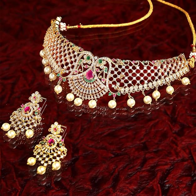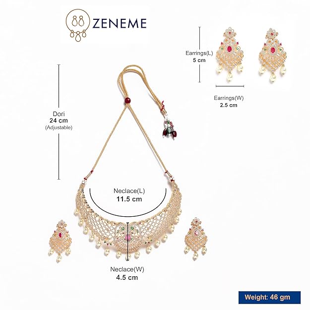 • What You Get:- 1 Elegant Looking White-Pearl Based Gold Plated Choker With Matching 2 N Earring and Matching Long Earrings.