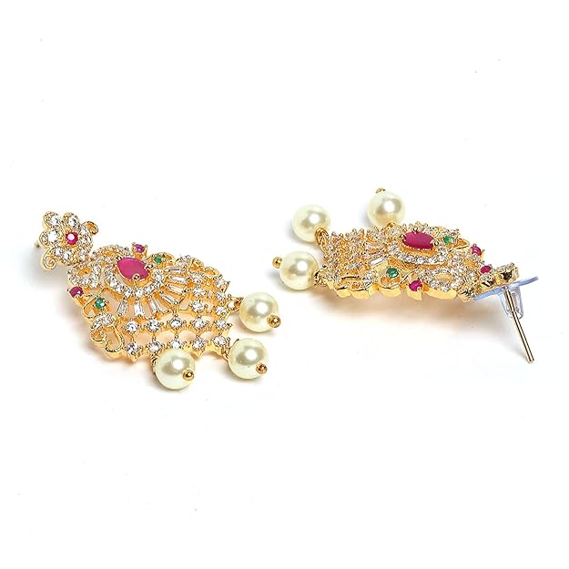 Be the first to review “Gold Plated White & Red American Diamond Studded With Drop Pearl Beaded Jewellery Set”